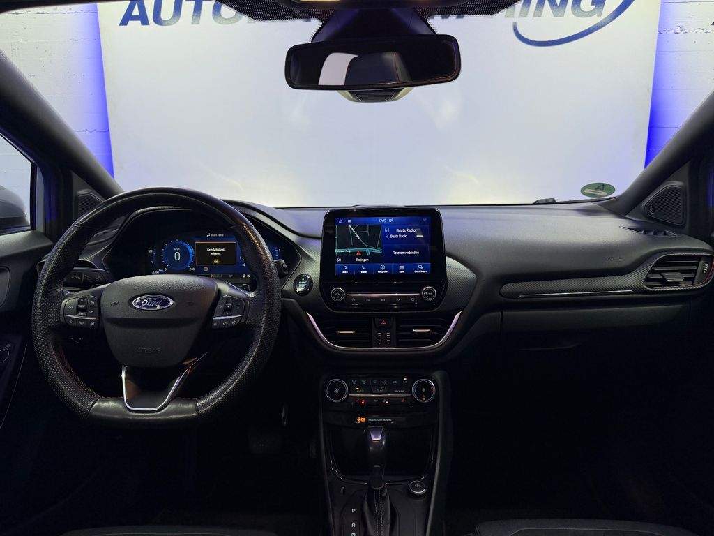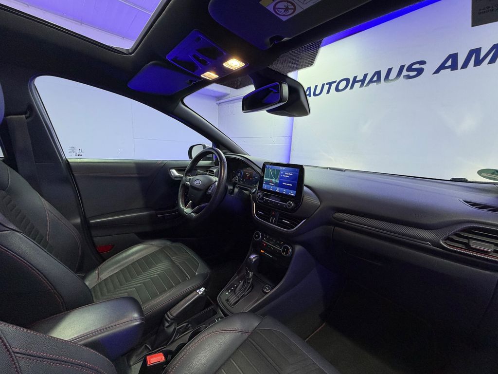 Allwetter-/ Ganzjahresreifen, Fahrassistenz-Paket, Panorama-Schiebedach elektrisch, Ambiente-Beleuchtung vorn (LED), Antischlupfregelung (ASR/ESP), Audio-Navigationssystem Ford mit AppLink, Außenspiegel elektr. anklappbar, Außenspiegel elektr. verstell- und heizbar, Body-Styling-Paket, Dachhimmel Stoff dunkel, Eco-Anzeige für verbrauchsoptimiertes Fahren (EcoCoach), Einparkhilfe vorne und hinten, Fahrassistenz-System: Berganfahr-Assistent (Hill-Holder), Fahrassistenz-System: Falschfahrer-Warnfunktion, Fahrassistenz-System: Fernlichtassistent (Scheinwerfer mit Abblendautomatik), Fahrassistenz-System: Notbrems-Assistent, Fahrassistenz-System: Post-Collision-System, Fahrassistenz-System: Pre-Collision-System, Fahrassistenz-System: Spurhalteassistent mit Müdigkeitserkennungs-Sensor, Fahrassistenz-System: Verkehrsschildassistent, Farbdisplay für Bordcomputer, Fensterheber elektrisch vorn + hinten mit Komfortschließung, FordPass Connect inkl. eCall, Fußmatten Teppich, Getriebe 7-Gang - Doppelkupplungsgetriebe, Heckleuchten LED, Innenraumfilter: Staub- und Pollenfilter, Intelligent Protection System (IPS), Intelligenter Geschwindigkeits-Begrenzer, Isofix-Aufnahmen für Kindersitz, Karosserie: 5-türig, Kombiinstrument Digital 12,3 Zoll, Komfort-Paket, Kopfstützen hinten mechan. verstellbar (3 Stück), Lackierung Laderaumboden variabel (Ford Megabox), Lendenwirbelstütze vorn, Lenkrad (Sport/Leder, ST), Lenkrad mit Schaltwippen, Lenksäule (Lenkrad) höhen-/längsverstellbar, LM-Felgen in 17" Zoll mit Allwetterbereifung, Mild-Hybrid 114 kW (Motor 1,0 Ltr. - 114 kW EcoBoost), My Key, Nebelscheinwerfer LED, Otto-Partikelfilter (OPF), Pedale Aluminium, Radstand 2588 mm, Reifen-Reparaturkit, Reifendruck-Kontrollsystem, Rücksitzlehne geteilt/klappbar (60:40), Schadstoffarm nach Abgasnorm Euro 6d, Scheinwerfer LED, Scheinwerfer-Assistent mit Tag-/Nachtsensor, Sitzbezug / Polsterung: Leder, Sitze vorn höhenverstellbar, Sonnenblende links mit Spiegel (beleuchtet), Sonnenblende rechts mit Spiegel (beleuchtet), Sport-Fahrwerk, Sportsitze vorn, Start/Stop-Anlage, Türgriffe außen Wagenfarbe, Verglasung hinten abgedunkelt (Privacy Glass)